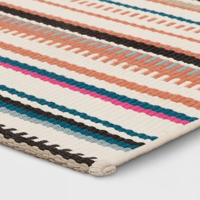 Add richness of color and texture to your outdoor space with the Outdoor Festival-Stripe Rug from Opalhouse™. This all-weather rug is great for outdoor use, and it combines playful style with comfortable cushioning underfoot and easy care (just rinse with a hose). This rectangular outdoor rug is decorated with multicolor woven stripes in assorted designs to add bold visual impact and pizzazz to your patio, deck or porch. Plus, the striped rug has a spray latex backing to help keep it in place wherever you choose to arrange it.