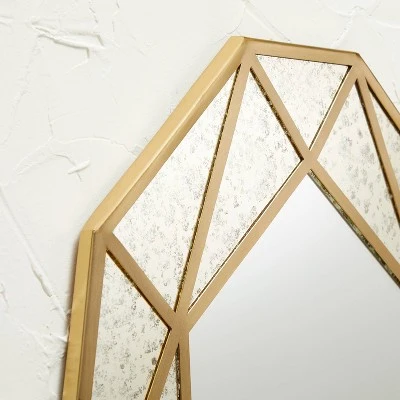 Beautify any bare wall in your home with this Antique Decorative Wall Mirror from Opalhouse™ designed with Jungalow™. Set on a metal frame, this decorative mirror features a geometric shape to create a bold focal point anywhere in your space. Showcasing a gold-tone accented design with an antique finish, this wall mirror is sure to attract everyone’s attention while adding a decorative accent to your space.