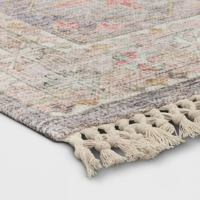 Create a lovely focal point without overwhelming your existing decor with this Geometric Printed Tile Persian Rug from Opalhouse™. Showcasing a distressed geometric Persian tiles print with side tassels in multicolored hues for a lived-in yet stylish look, and a woven design for plush comfort underfoot, this geo printed rug makes a wonderful addition to any room. With a durable latex backing that helps keep the rug in place and a low pile height that’s easy to clean and maintain, this rectangular area rug brings style and comfort to any space.