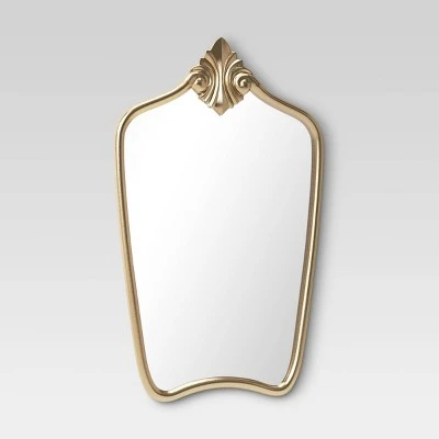 Add a glam look to your decor by accenting any wall with this Gilded Brass Decorative Wall Mirror from Opalhouse™. The uniquely shaped frame with gilded finish adds a glamorous look, while the gleaming reflective glass helps to open up your space. Perfect for grooming or decoration, hang this decorative wall mirror in your entryway, vanity or master suite for a touch of style and function.