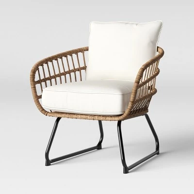 Curl up under the sun to read a book, watch a movie or just talk with friends on the Southport 2pk Club Chairs from Opalhouse™. These lovely club chairs feature a white steel frame paired with brown wicker details for a look that’s equal parts chic and bold. The neutral colors match well with any design aesthetic you may have going on in your patio space, whether you prefer more rustic and cozy decor or an aesthetic that feels cool and streamlined. The rust-, water- and weather-resistant properties mean worry-free maintenance and the seat and back cushions provide comfort and coziness.